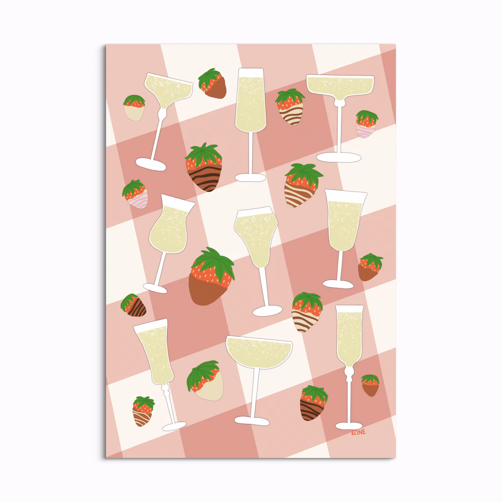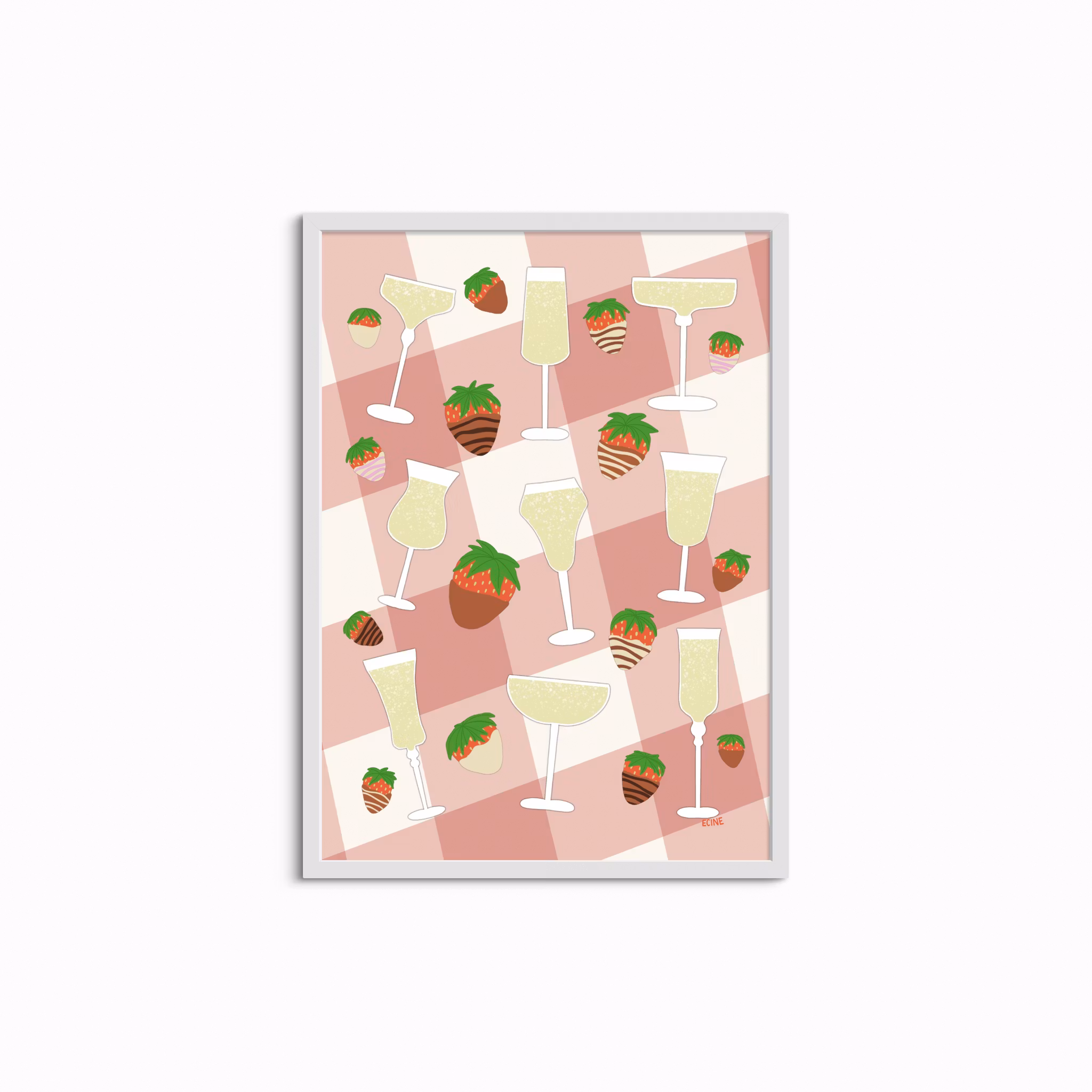Jordgubbsfrossa är ett fine art print med motivet av jordgubbar doppade och dekorerade med choklad. Det finns med bakgrundsfärgerna vit, blå och rosa. Tryckt på 210 gsm högkvalitativt matt papper. Jordgubbsfrossa finns tillgänglig i storlekarna 30x40 cm samt 50x70 cm.
