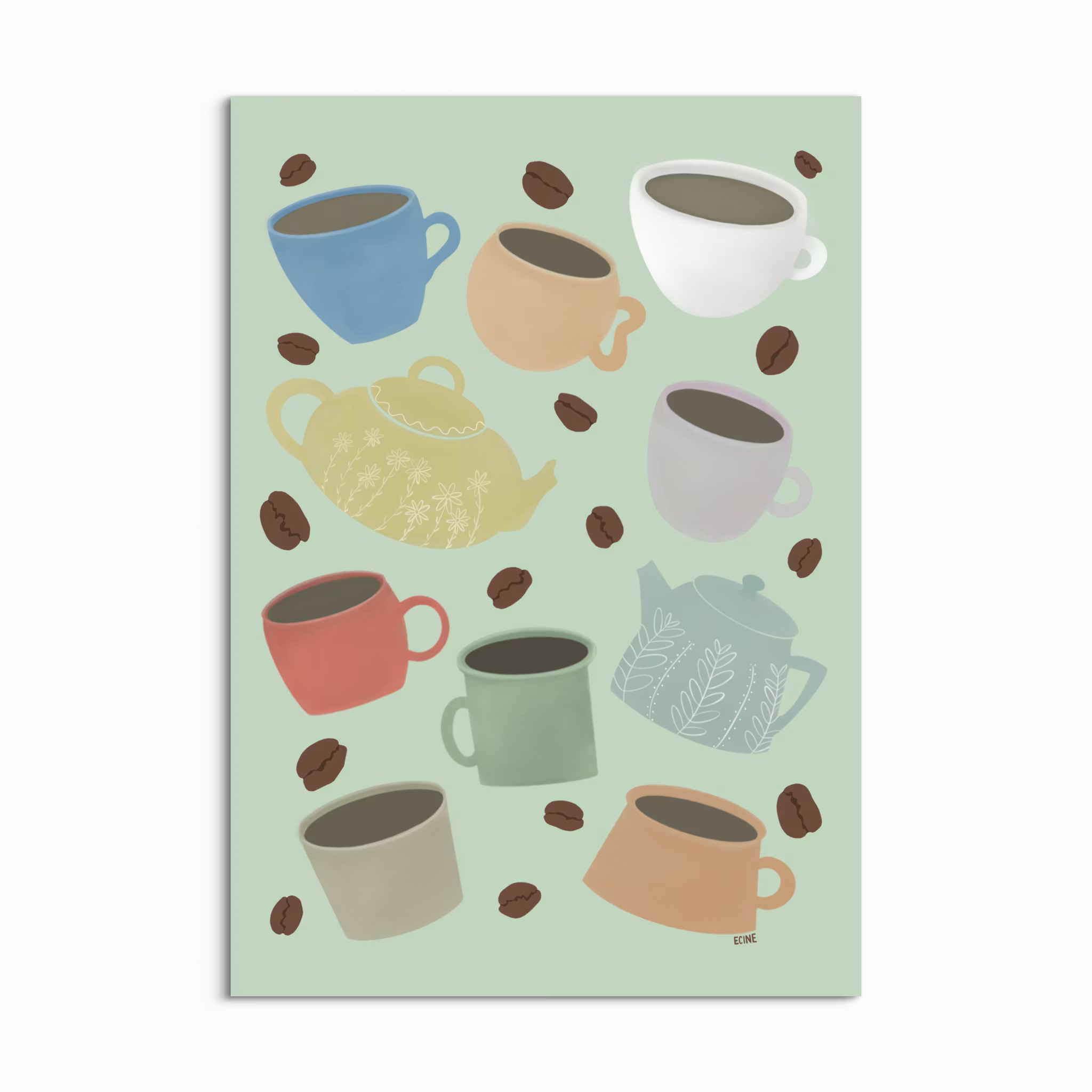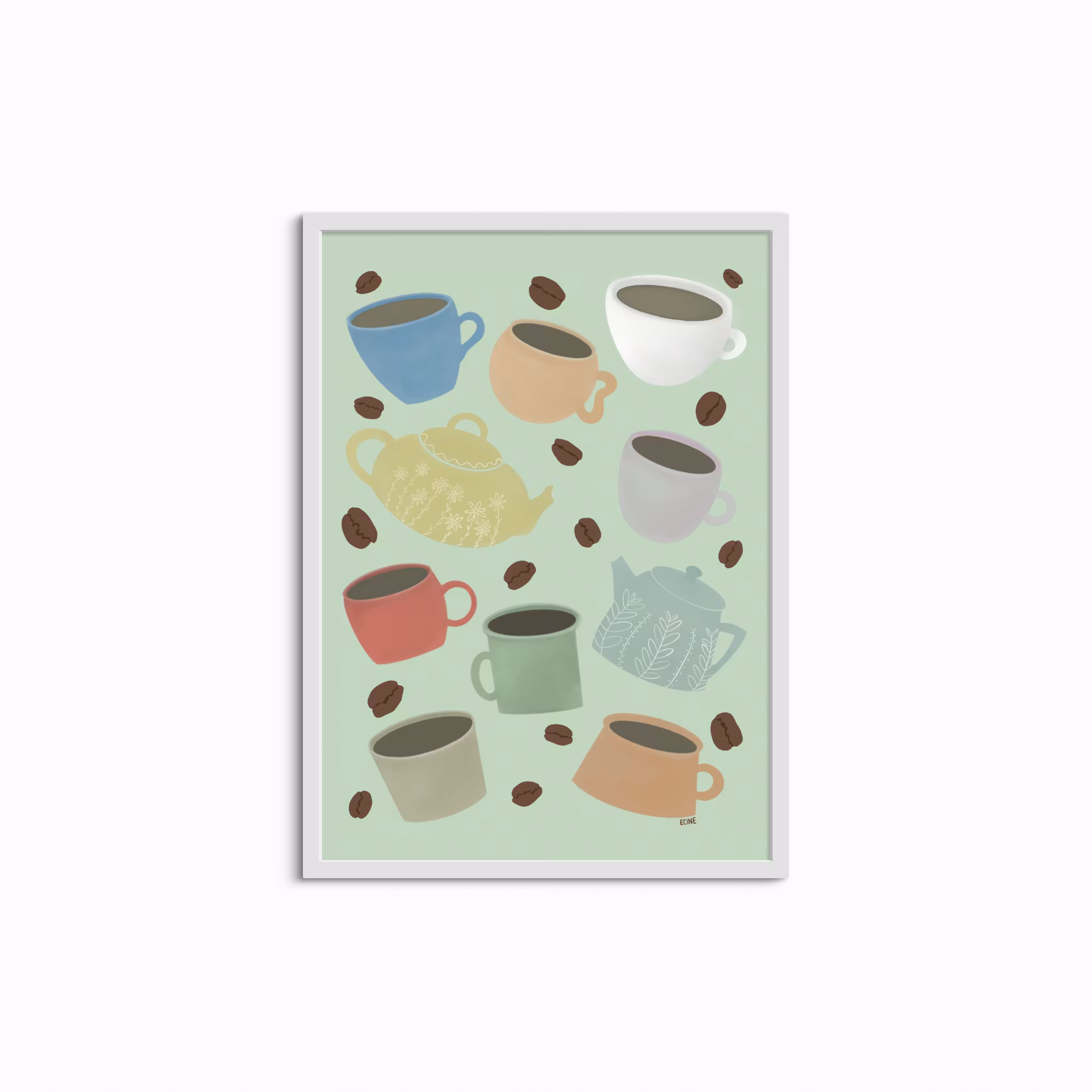 Kaffestund är ett fine art print med motivet av kaffekoppar, kaffekannor och kaffebönor i en härlig kombination. Tryckt på 210 gsm högkvalitativt matt papper. Kaffestund finns tillgänglig i storlekarna 30x40 cm samt 50x70 cm.